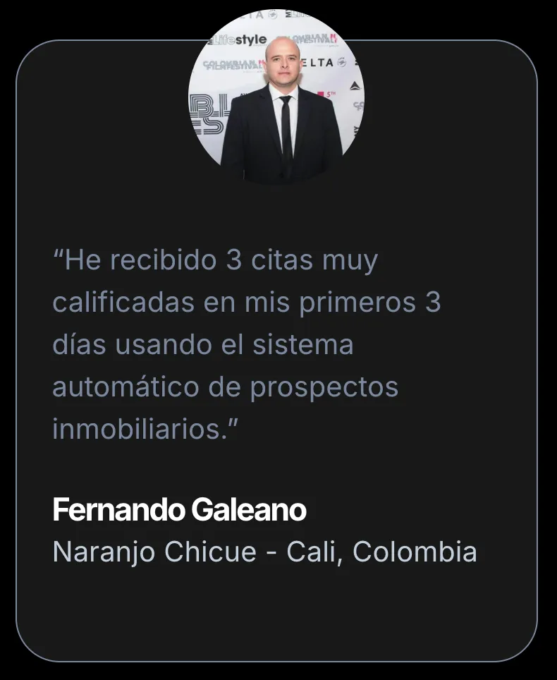 Este método está construido a partir de procesos REALES usados en mercados competitivos como Colombia, Perú, Chile, Ecuador, México y Miami, donde agentes lograron estabilidad, consistencia y flujo de prospectos calificados aplicando exactamente lo que verás aquí.